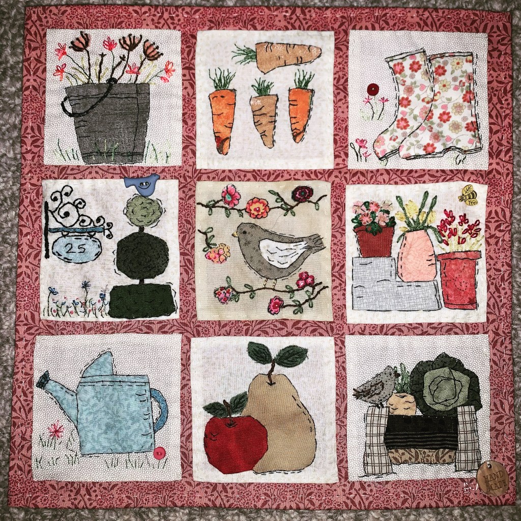 This hand stitched method of appliqué requires adopting a naive style. The trick is to ensure stitches are not even and to use an outline couch stitch to create a sketchy appearance. I became interested in this style after attending a workshop, and I’ve been hooked on it ever since. Some of my designs are shown below.